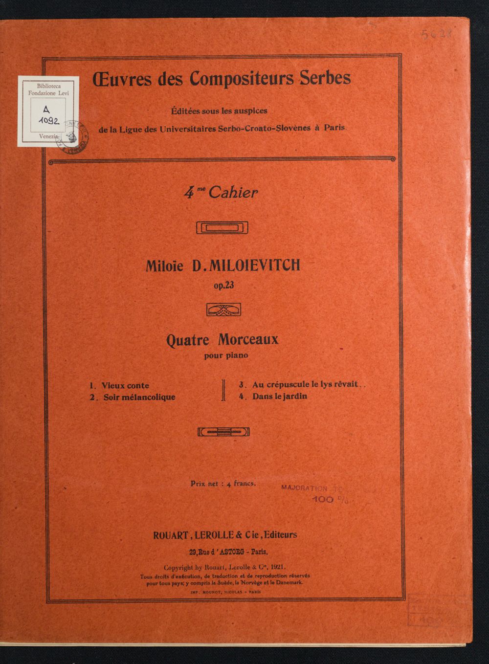 Quatre Morceaux : pour piano : Op. 23 / Miloie Miloievitch. - Paris : Roua…